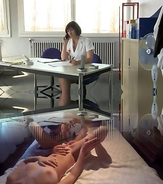 Compassionate brunette with scorching ass unpins her uniform then yelling while her shaved pussy is smashed