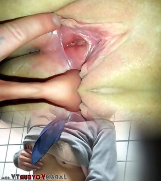 Freaky hubby fingers bunghole of his slutty Asian wench greedily