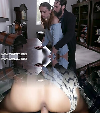 Jealous stepdad slaps and fucks pretty ginger stepdaughter Lily Glee