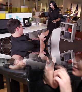 Sexy officer gets her soles fucked and jizzed at the police station