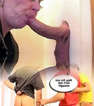 Messy Asian mom gives a head to strain dick sticking out of glory fuckhole