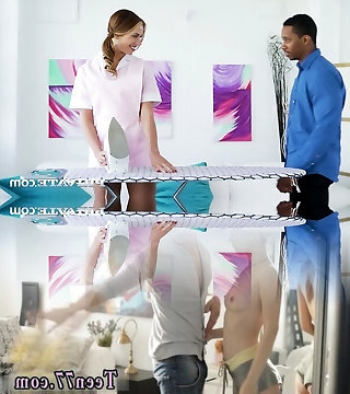 Teen stud cheated with Plumper maid on the balcony until his Ebony wife caught them!