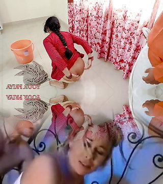 Small peak for a latina MILF maid if she cleans the tormentor's cock with her mouth and cooter