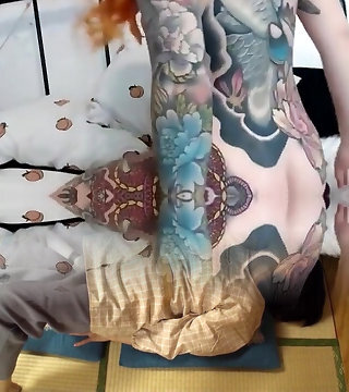 POV video of tattooed brunette girlfriend sucking a fat dick