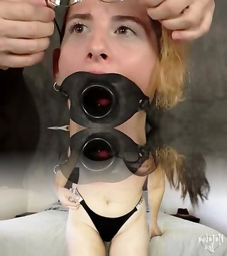 Dude puts the mask on sex-slave before penalizing her jaws