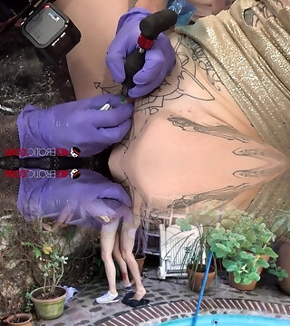 Extreme demon pussy tat getting more ink