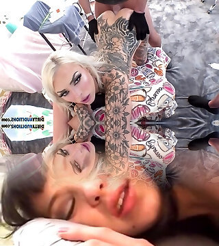 Wondrous Tattooed Trap Lets Her Hot GF Gives Her Oral