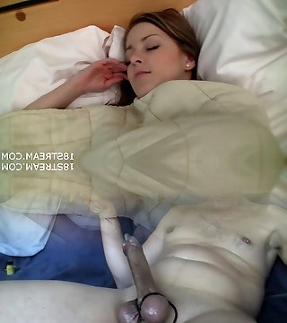 After a titjob he shoots a load all over this sleeping Asian female's tits