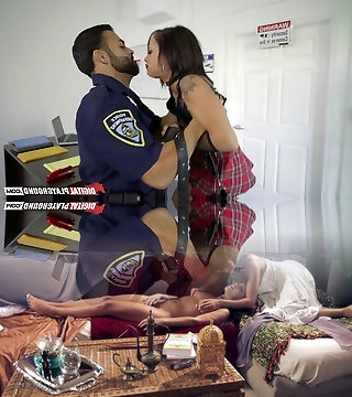 Naughty babe wants to feel a police officer's schlong up her booty