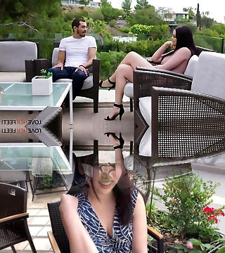 超级他妈的热摩洛伊斯兰解放阵线罗尼给她的女孩一个尼龙footsie在晚餐