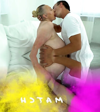 HELLOGRANNY老胸部和巨大的屁股滚在床上