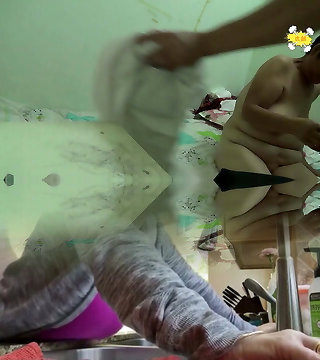62岁的俄罗斯奶奶引诱我喝醉的朋友在厨房里