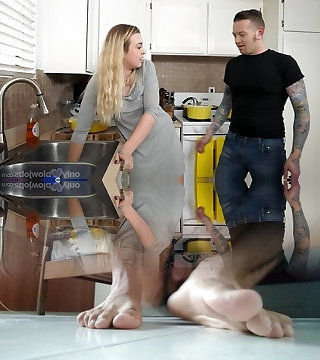 步骤妈妈没有内裤超短裙在厨房梯子上得到吃掉和蹂躏