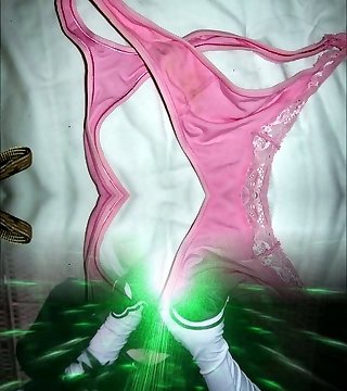 通过粉红色的棉质内裤抚摸自己