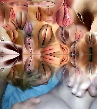堆叠的黑发美女显示,她的紧剃阴部上的